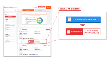 レポートの依頼が完了しますと、依頼した医師の依頼ボタンが「作成依頼中」になり、レポート到着期限が表示されます。