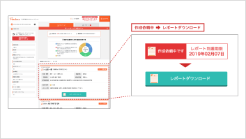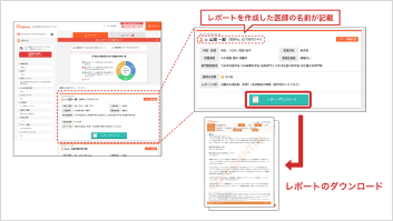医師からレポートが到着すると「作成依頼中」が「レポートダウンロード」になり、レポートのダウンロードが可能になります。
