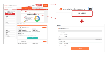 ご自身メールアドレスの横の設定ボタンを押していただくとレポートの「購入履歴」を見ることができます。